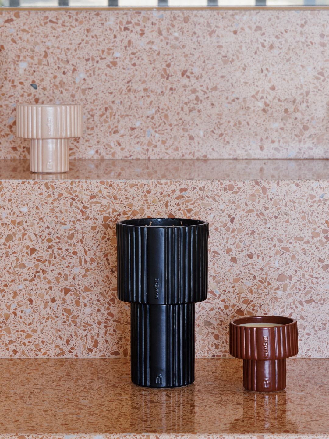 La bougie parfumée rechargeable Lampe s’inspire des lignes organiques et des courbes généreuses des lampes champignons des années 70. La silhouette est opulente et les dimensions sont monumentales. La Lampe est sculpturale et s’expose comme un trophée.