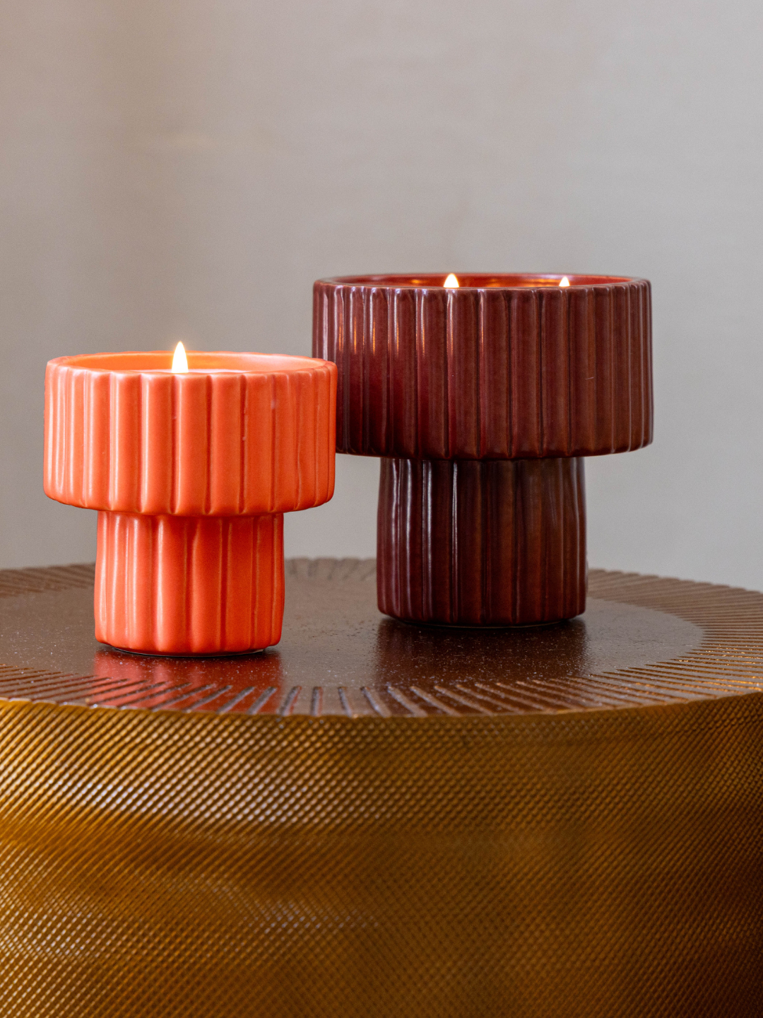 La bougie parfumée rechargeable Podium rend hommage aux lampes champignon des flamboyantes années 70.