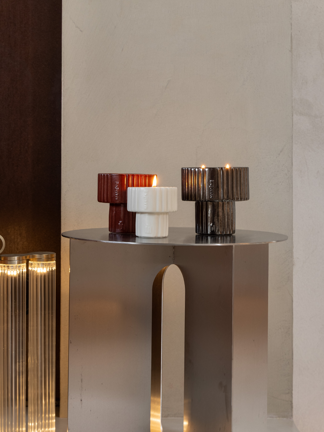 Bougie Podium Small Blanc Greige NELSON